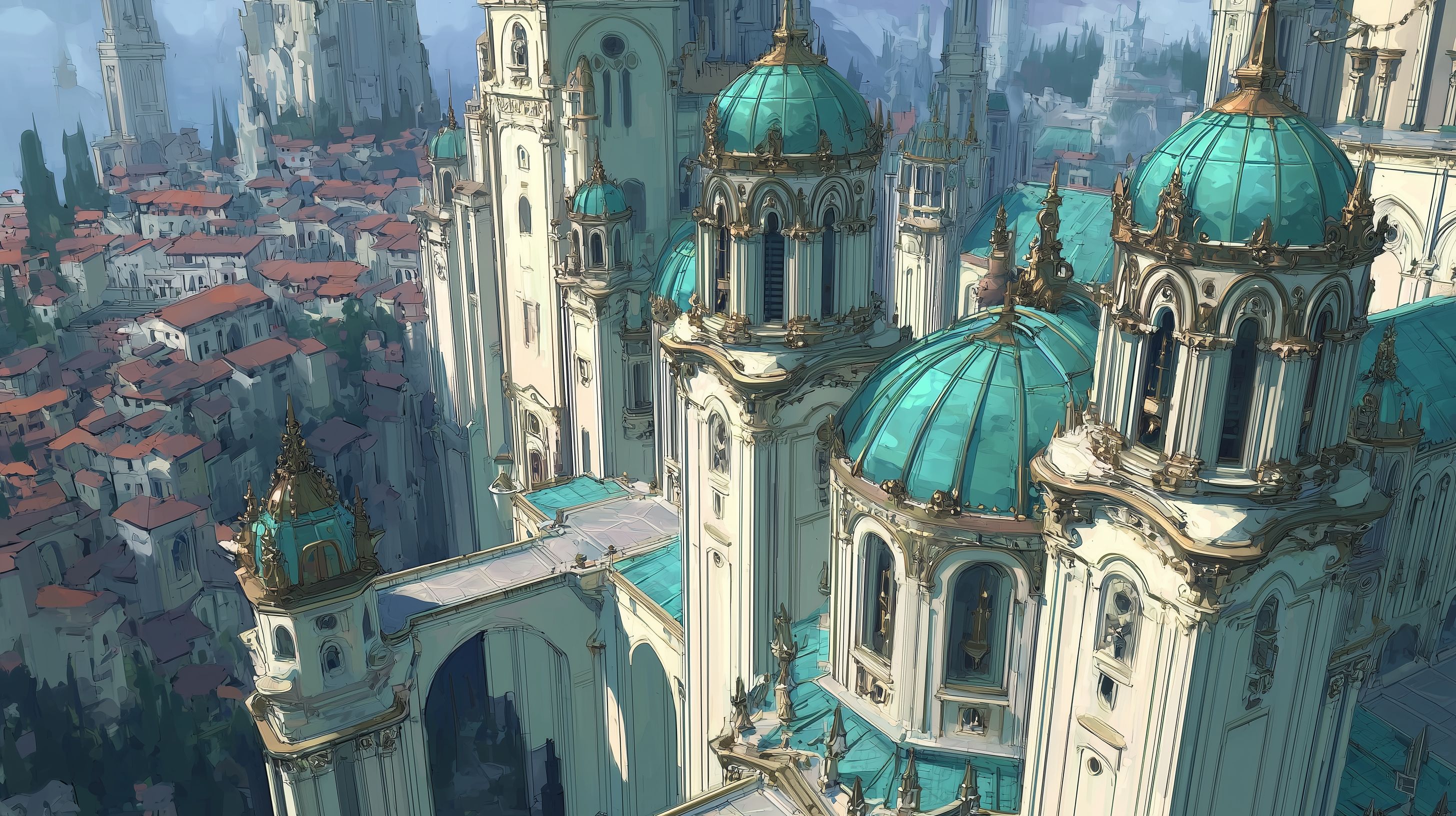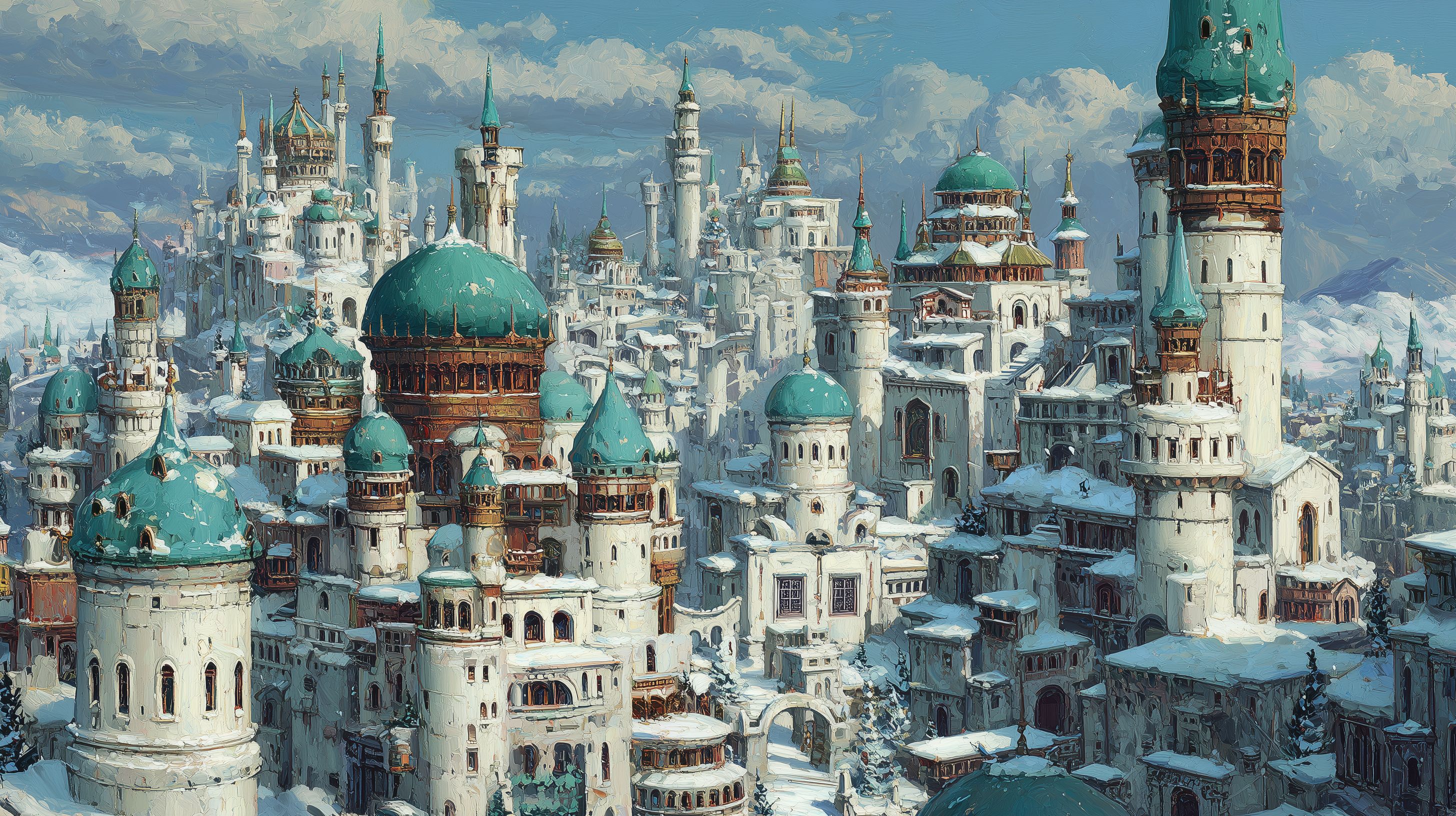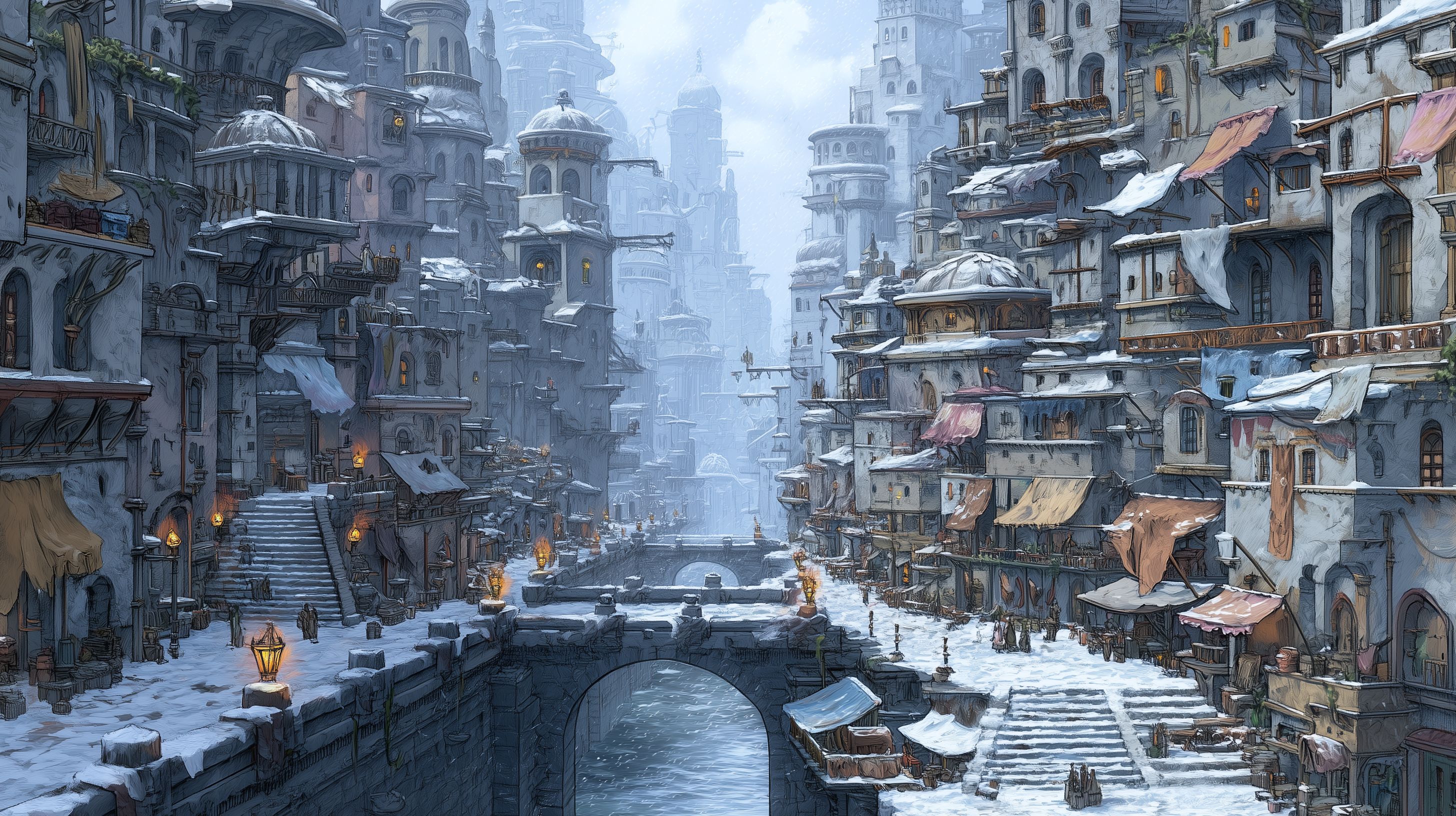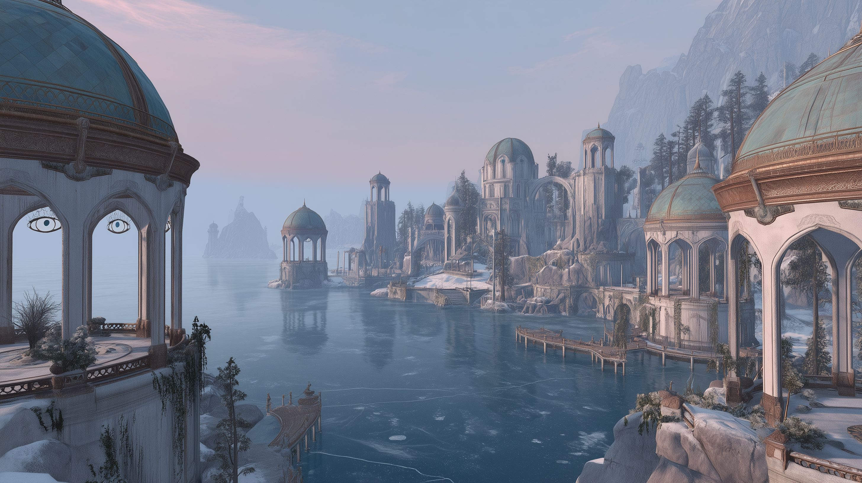 Nabrzeża pełne są granitowych kolumnad i kamiennych pawilonów pamiętających jeszcze Elfy sprzed Destabilizacji. Ulice wiją się między niskimi, szerokimi budynkami z białego kamienia, których okna wychodzą na wodę, a miedziane dachy – pokryte zieloną patyną – miękko odbijają światło, delikatnie połyskując.