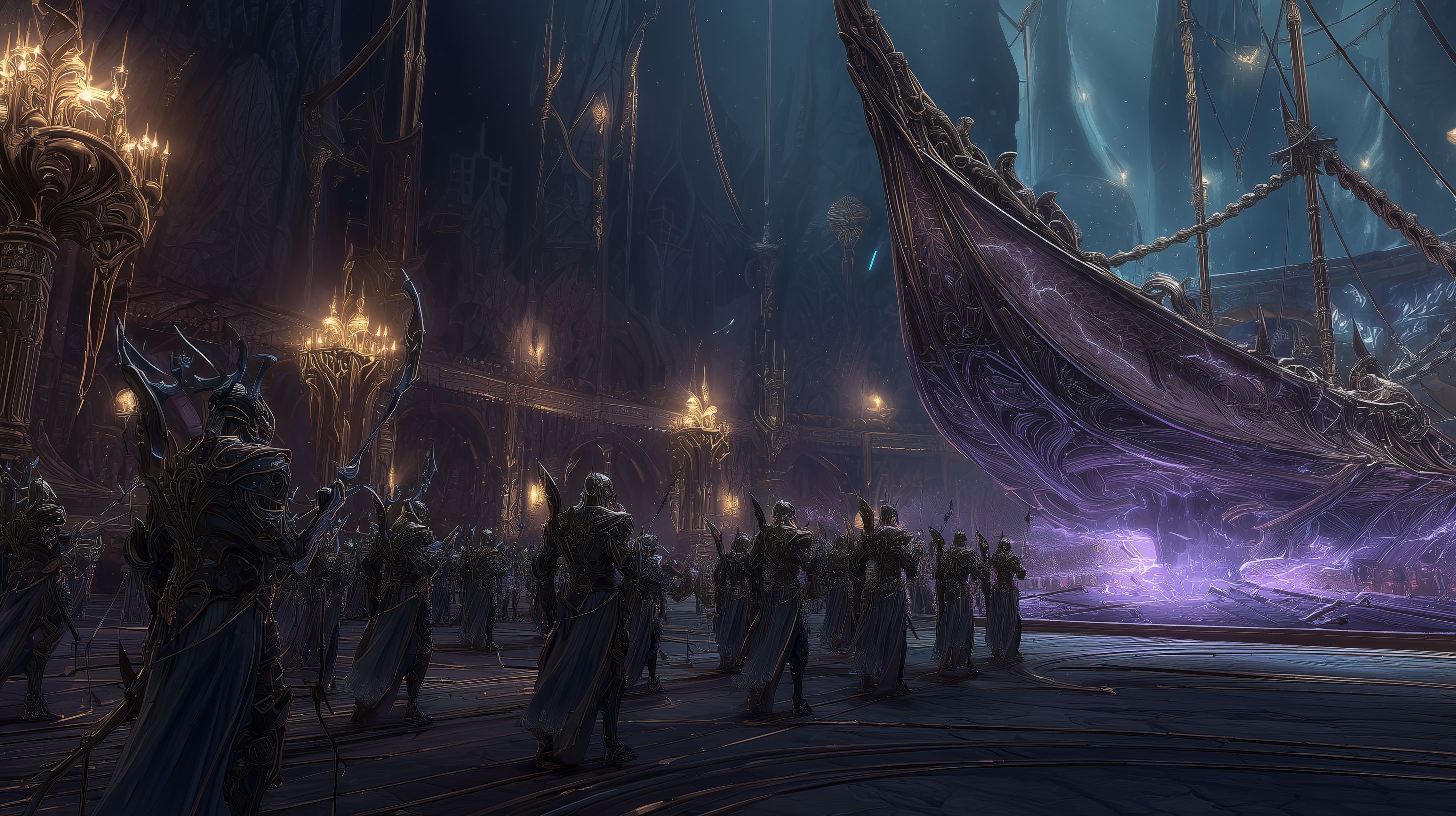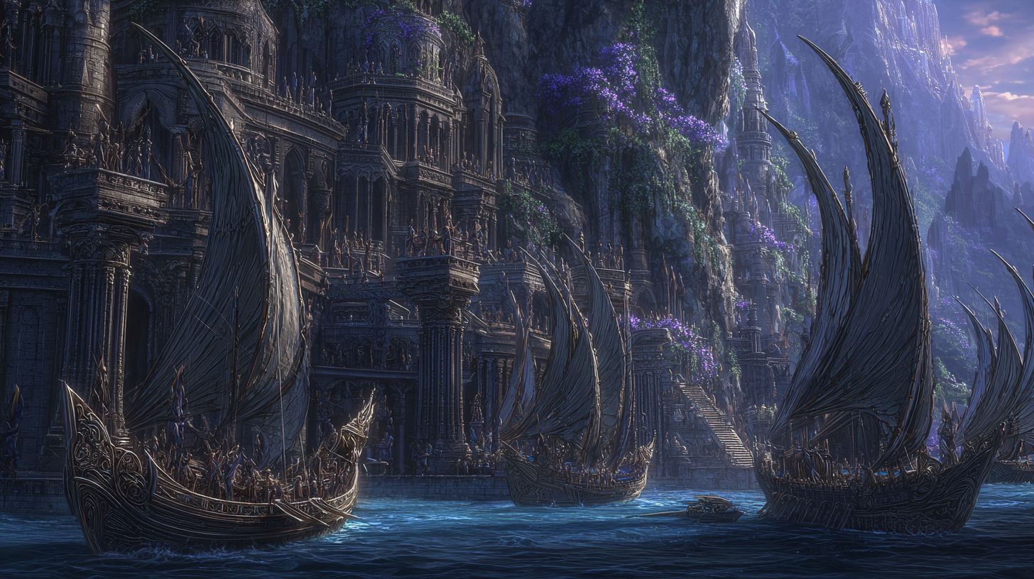 Okręt rzadko opuszcza port bez wyraźnego rozkazu. Jego obecność w Maegtir przypomina wszystkim, że choć Elfy nie podnoszą głosu bez potrzeby — to ich milczenie również może być ostrzeżeniem.