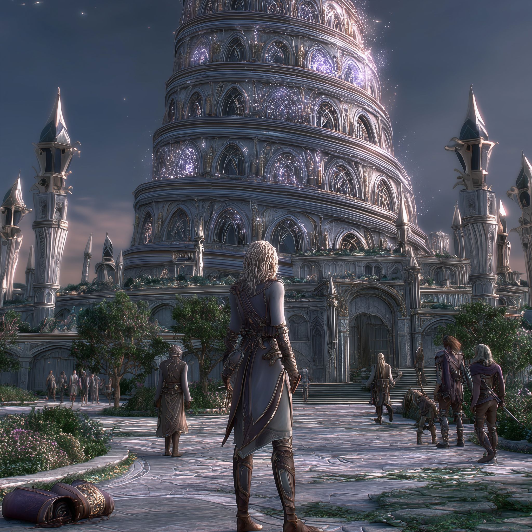 Dzielnica Cytadela w Lornar zajmuje dominujące, wysokie wzgórze górujące nad resztą elfickiego miasta portowego. Choć nazywana jest Cytadelą, nie jest to pojedyncza budowla, lecz potężny kompleks ściśle powiązanych struktur wojskowych, administracyjnych i ceremonialnych. Centralnym punktem jest ogromna, majestatyczna twierdza, zbudowana z masywnych bloków jasnego kamienia, wzbogacona o misterne mithrilowe zdobienia, które w świetle księżyca mienią się subtelnym, srebrzystym blaskiem. Strzeliste wieże, przykryte dachami z patynowanej miedzi, dodają całości elegancji i powagi typowej dla elfickiej architektury. Choć cały mechanizm miasta działa jak precyzyjna maszyna, to Cytadela stanowi jej serce — miejsce, gdzie zapadają decyzje i gdzie koncentruje się władza.