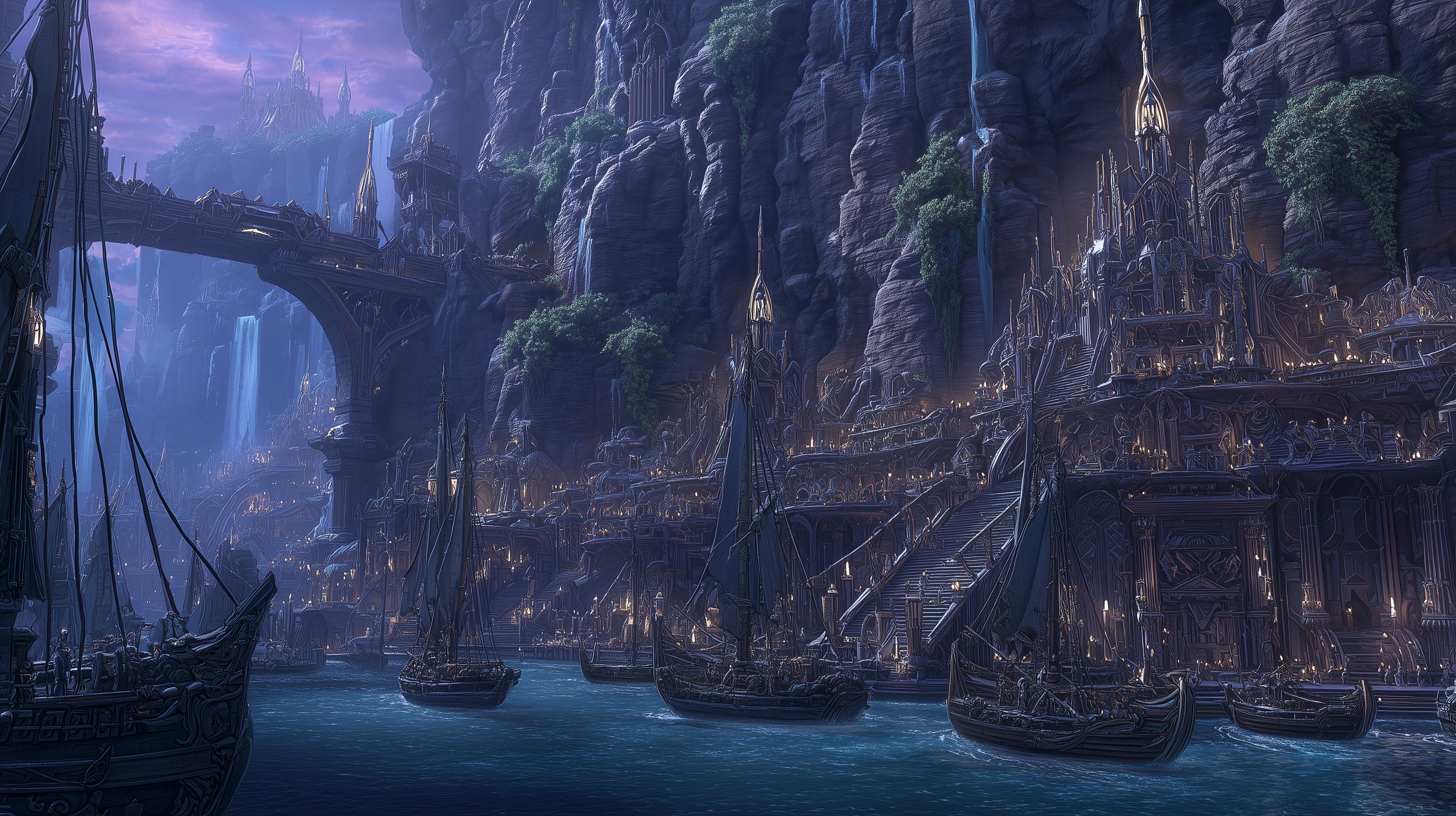 Port Nimrathil nie jest wyłącznie strefą przeładunku. To część organizmu miasta, dostosowana do jego rytmu i potrzeb. Elfy z Lornar traktują go z dumą, ale też z czujnością. Główny trakt portowy ciągnie się wzdłuż całej linii brzegowej; choć nie wszędzie znajdują się doki, prowadzi on przez najważniejsze punkty handlowe i strategiczne.