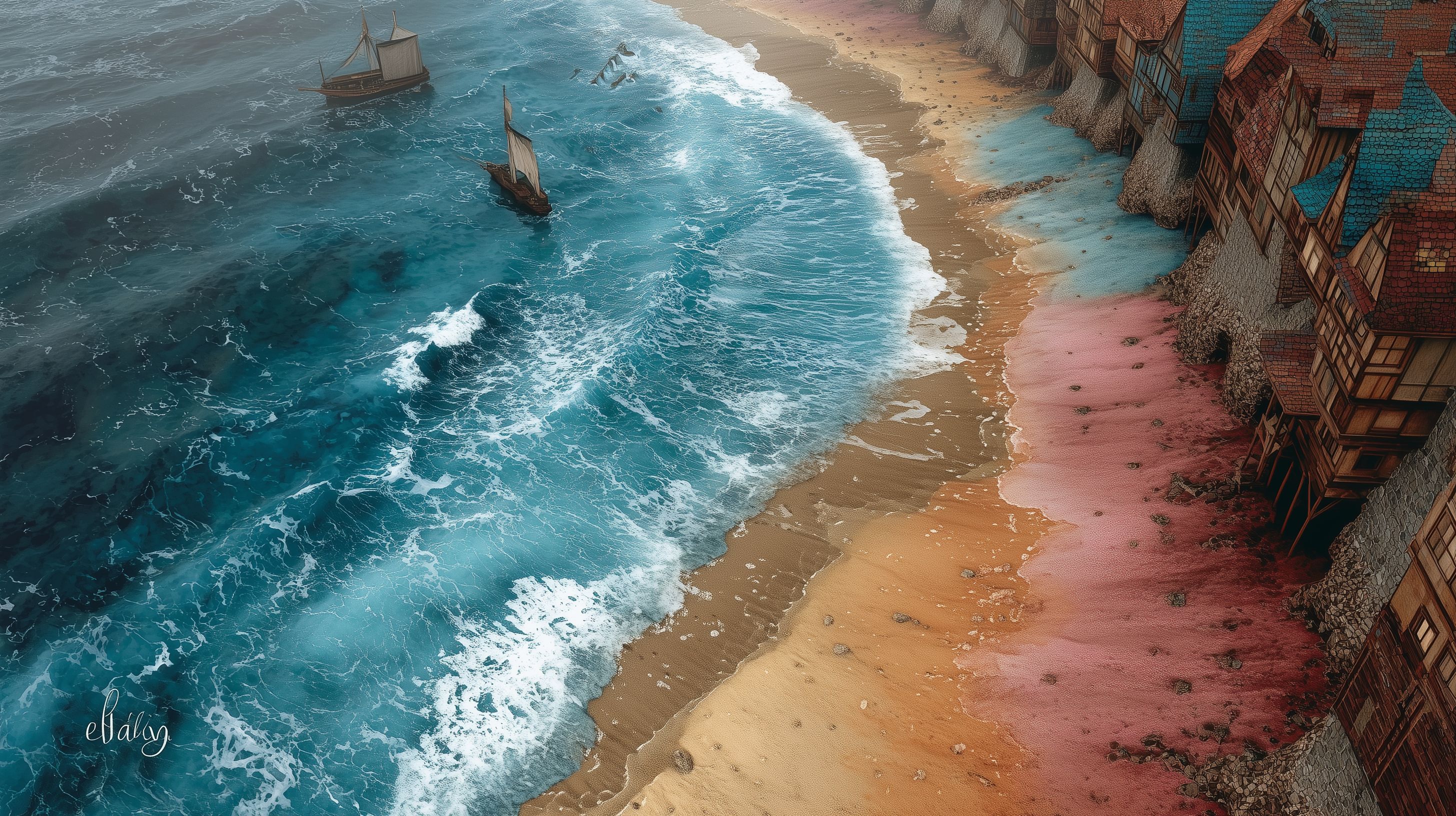 Kolorowe Wybrzeże to dzielnica farbiarska, której ulice spływają kolorami. Barwniki wylewane od wieków zabarwiły ziemię, tworząc naturalne dzieło sztuki. To miejsce pracy rzemieślników, artystów i handlarzy farbami. Tu też znajdują się akademie koloru i zapachów, gdzie powstają perfumy i mikstury.