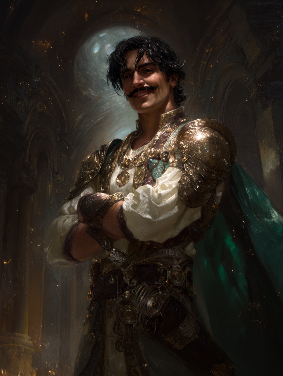 Ubiera się z rozmachem i wyczuciem, preferując stroje łączące ozdobność z funkcjonalnością. Na ramieniu często nosi pelerynę w kolorze szmaragdu, spinaną misterną broszą w kształcie trybiku. Jego postura zdradza pewność siebie — wyprostowany, dumny, z rękami często skrzyżowanymi na piersi, jakby oceniał właśnie świat i znajdował go inspirująco niedoskonałym. Trudno przejść obok niego obojętnie — Darian emanuje aurą człowieka, który zna swoją wartość i nie boi się ją zamanifestować.