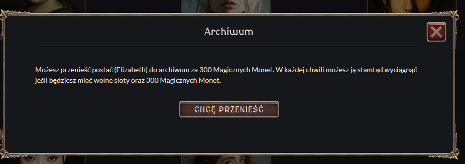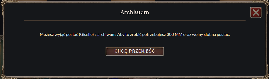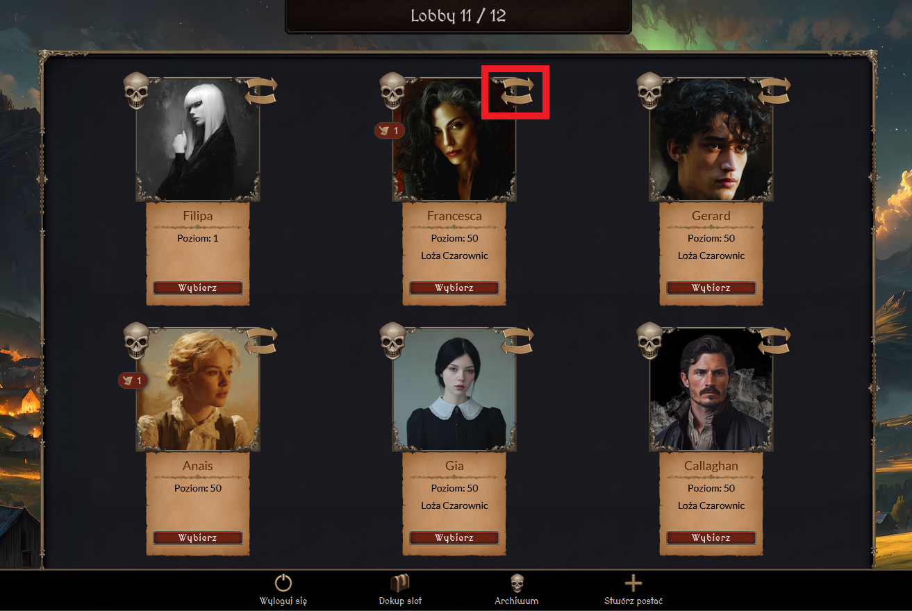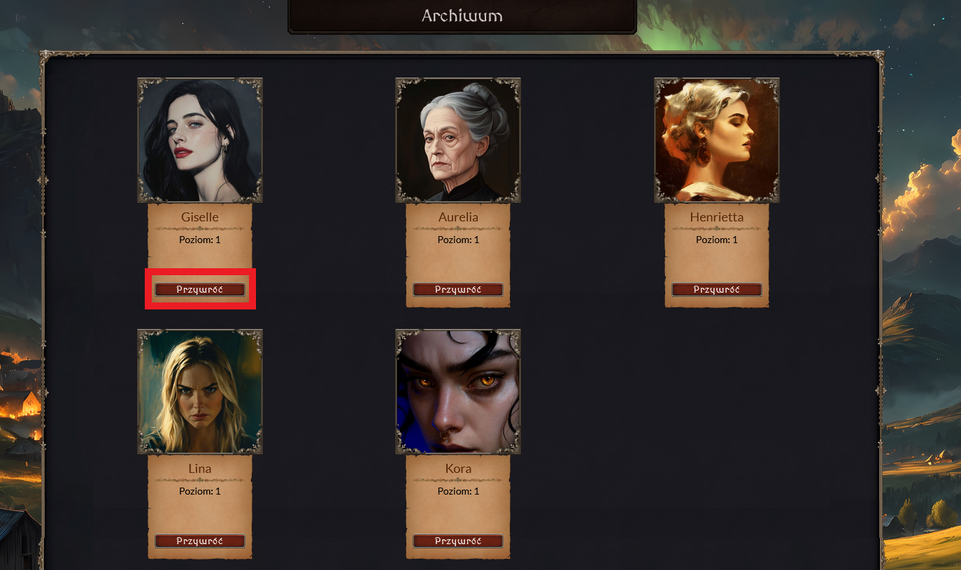 archiwum — przejście do ekranu z nieaktywnymi postaciami,