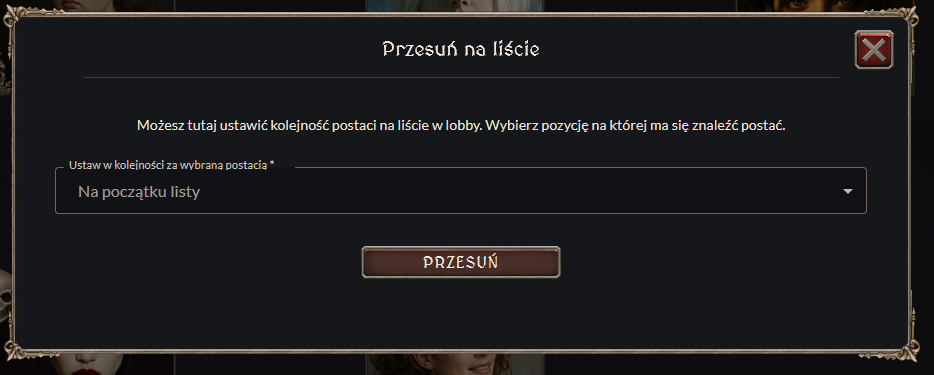 Ikona strzałek (↔) [5] — pozwala zmienić kolejność postaci na liście w Lobby.