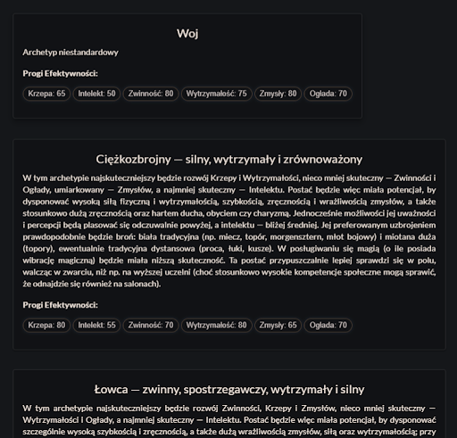 Jeśli żaden z gotowych Archetypów nie przypadł nam do gustu, Kroniki oferują możliwość stworzenia własnego — dopasowanego do naszych potrzeb. Po wybraniu opcji „LUB STWÓRZ WŁASNY ARCHETYP” na liście archetypów zostajemy przeniesieni do kreatora: